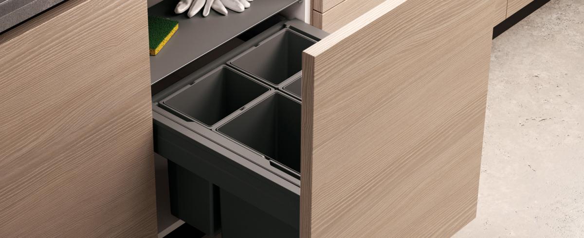 The line is available for bases from 300mm to 900mm and with different heights, depths, and combinations of bins.