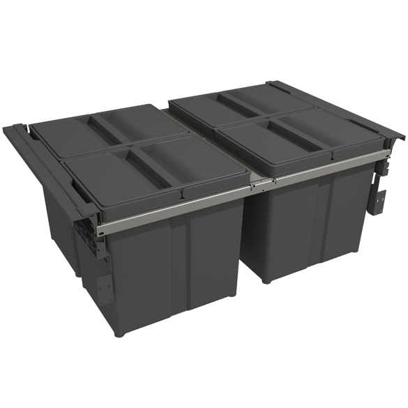Capacité : deux bacs avec capacité 17lt chacun et deux petits bacs.