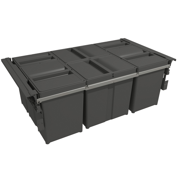 Capacité : trois bacs avec capacité 17lt chacun, un bac avec capacité 11lt et deux petits bacs.