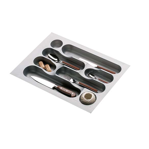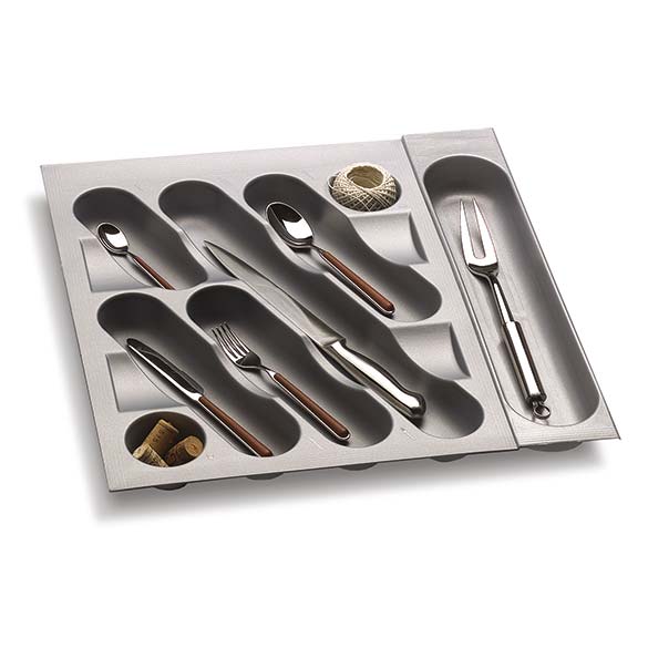 Possibilité d’équiper les range-couverts en les rendant plus fonctionnels avec accessoires optionnels comme porte-couteaux, planche à découper et porte-épices.