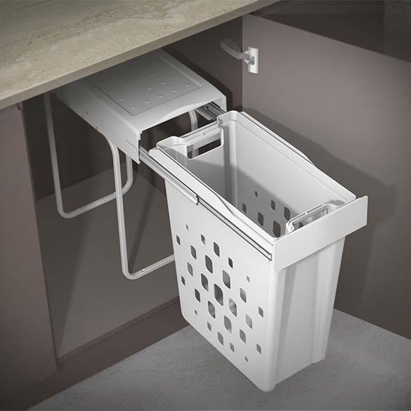L'Art. 294 Laundry è un raccoglitore per biancheria ad estrazione frontale ideale per l'installazione anche in spazi ridotti. Dotato di speciali guide ad estrazione totale questo raccoglitore ha un coperchio studiato per facilitare l'apertura e la chiusura in presenza di biancheria sporgente.