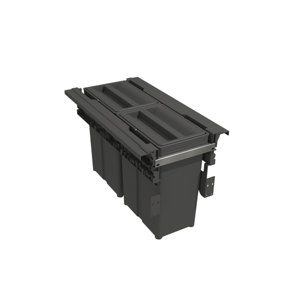 Raccoglitore ad estrazione frontale con secchi sospesi.