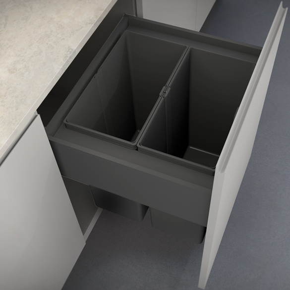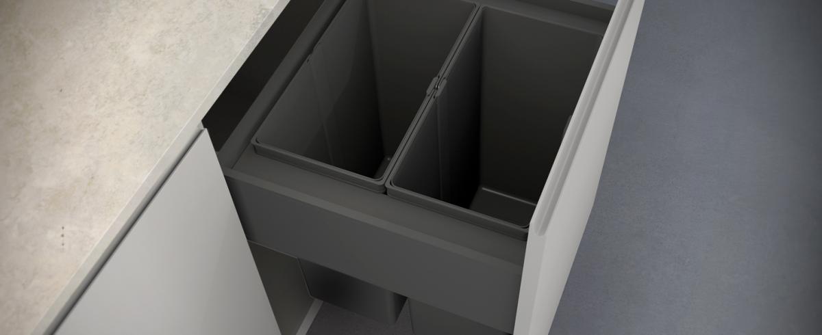 Raccoglitore ad estrazione frontale con secchi sospesi.