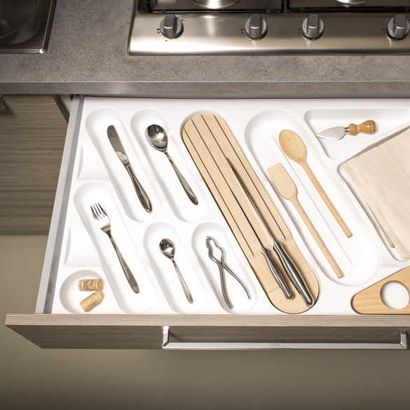 Ogni base è rifilabile facilmente alla misura desiderata per adattare il prodotto ad ogni tipo di cassetto.