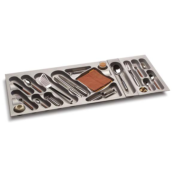 Progettati dai designer Lucci&Orlandini i portaposate della Linea Design si contraddistinguono per la morbidezza delle forme e la funzionalità degli spazi, caratterizzati dal posizionamento diagonale dei vani.