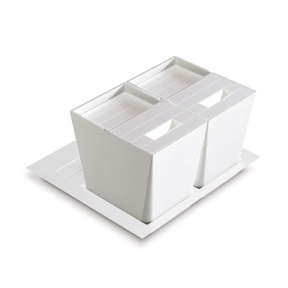 Raccoglitori da cestone con coperchi in finitura plastica opaca.